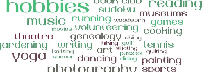 Hobbies are also very individual. What might qualify as a hobby for you might not for someone else. In general though, a few great examples of hobbies are cooking, dancing, gardening, knitting, music, painting/art, photography, puzzles, reading or a book club, a sport (tennis, golf, soccer, skiing, yoga, etc.), traveling and writing.
